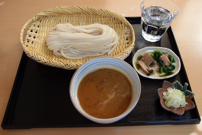 カレーうどんより濃い目の汁で、冷水で〆た麺をいただきます。