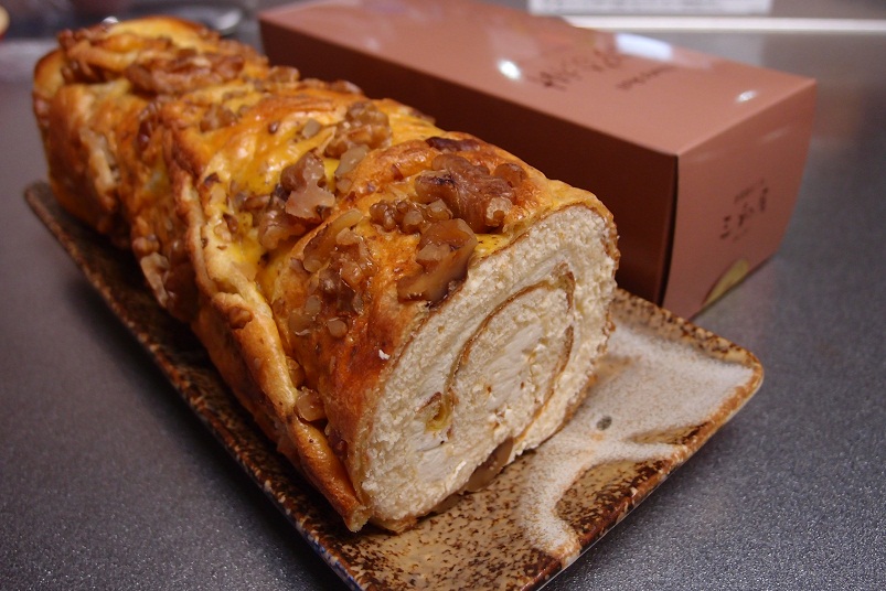 まわりにたくさんクルミが散りばめられていて、それが良い食感と香ばしさを出していて美味しいです。