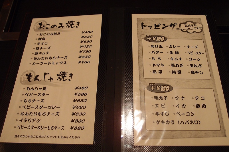 注文したのは、お好み焼き、もんじゃ焼き、ドリンク・・・。
