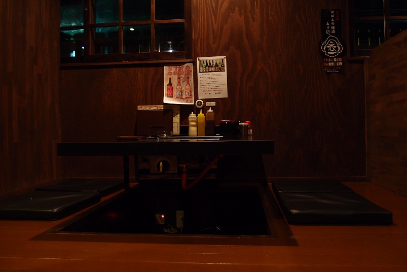 店内は掘りごたつ式のテーブルで、ちょっとBOXタイプに仕切りがあって、落ち着いて食事ができます。