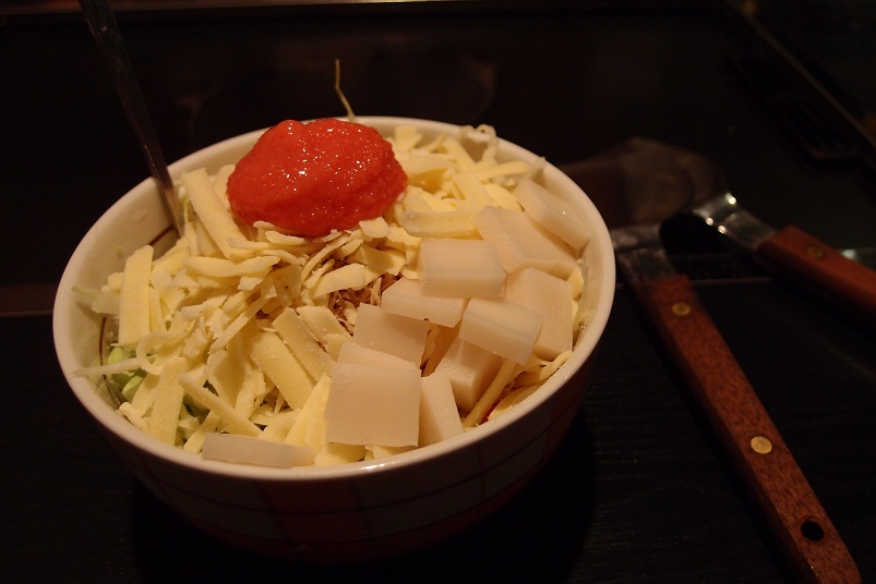 久しぶりのもんじゃです。もんじゃ焼きは、めんたいもちチーズを注文することが多いです。