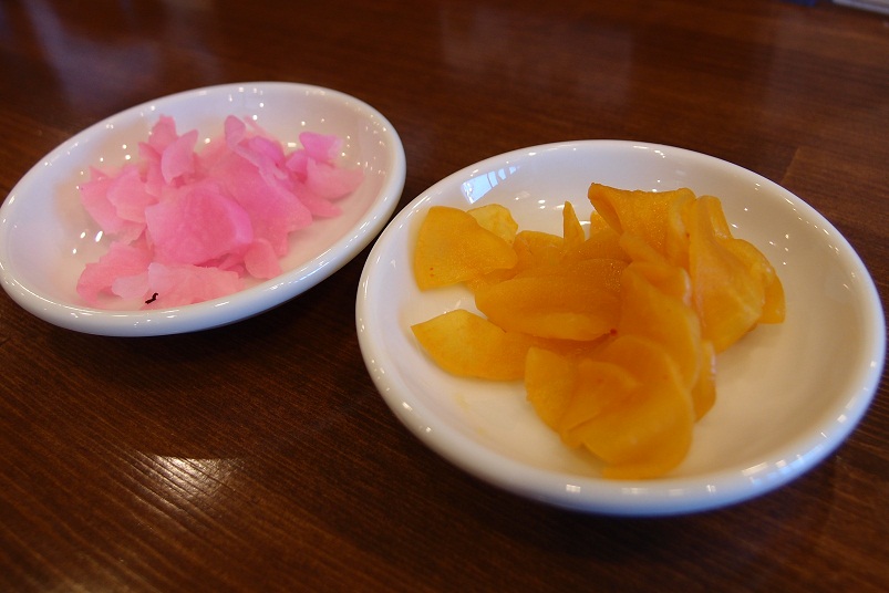注文して待っている間に漬物屋台なるものがあって、そこの漬物が食べ放題になっています。