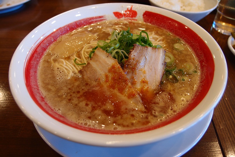 派手目な赤い看板。店内は博多ラーメンばりきやになんとなく似たイメージ。