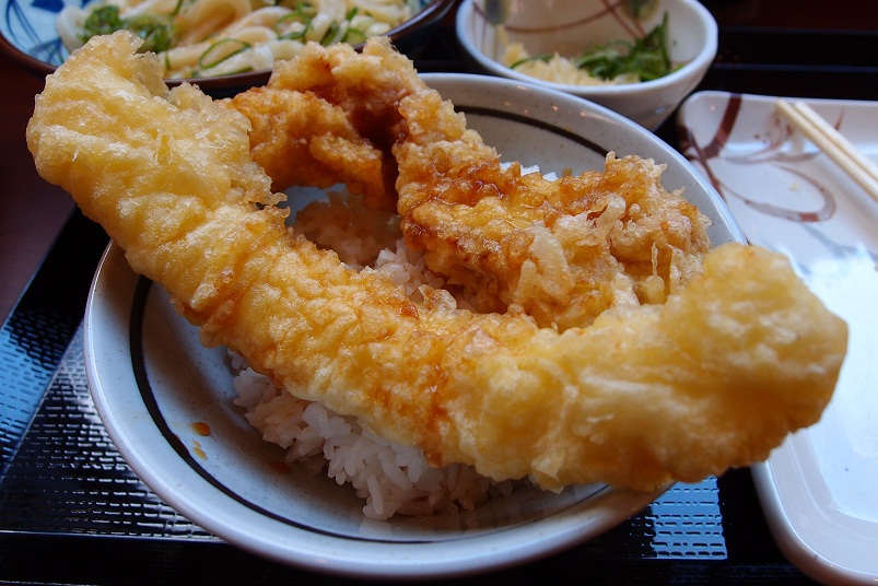 私のイチオシは、かしわ天です。今日は天丼にします。