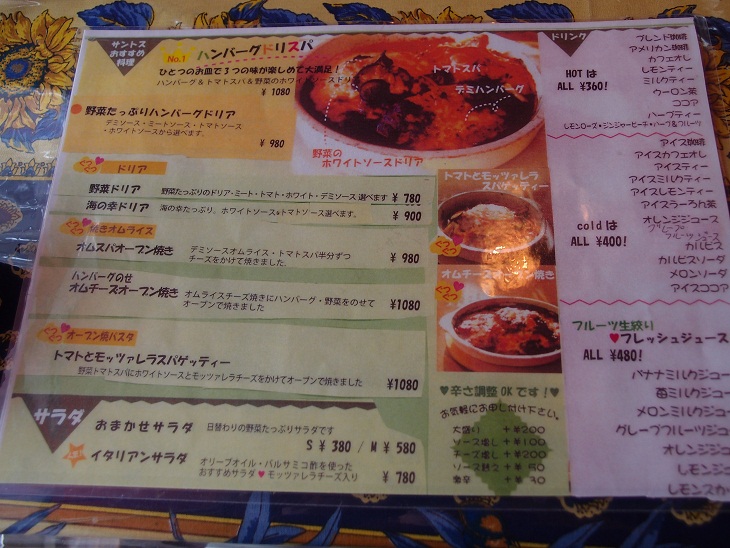 パスタ、ピザ、ドリアなどがあり、どりらかというとドリアやハンバーグをのせたオーブン焼きがメインなように感じました。