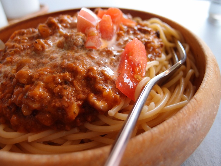 それとミートソースをかける前に麺にチーズを絡めるのも特徴だと思います。