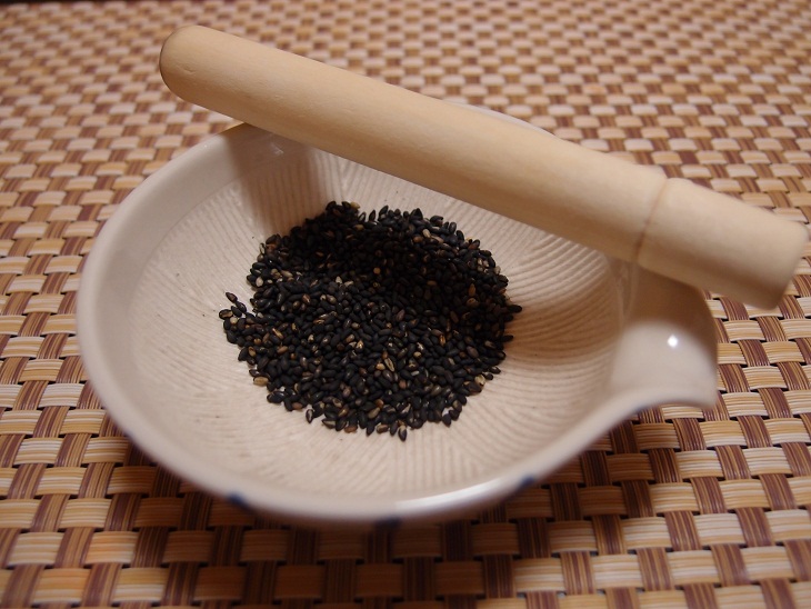 カツが揚がるまで、ゴマをすって待ちます。