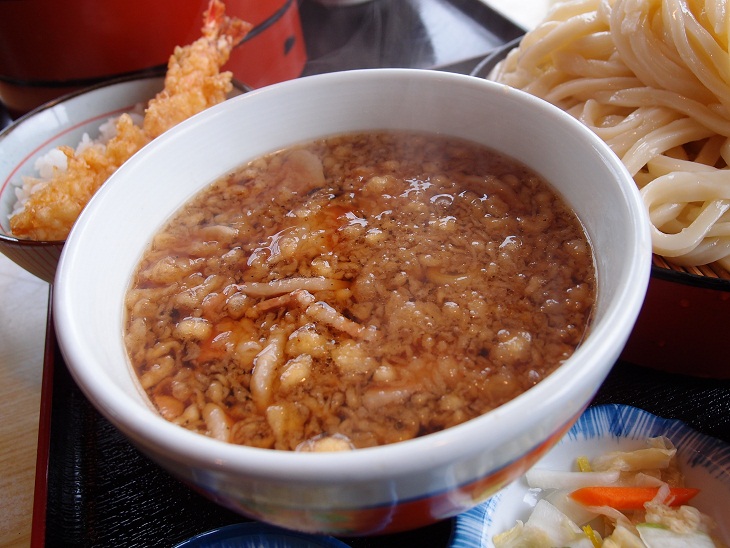少し甘めのつけ汁ですがバラ肉と天かすからコクが出ててなかなかのお味です。