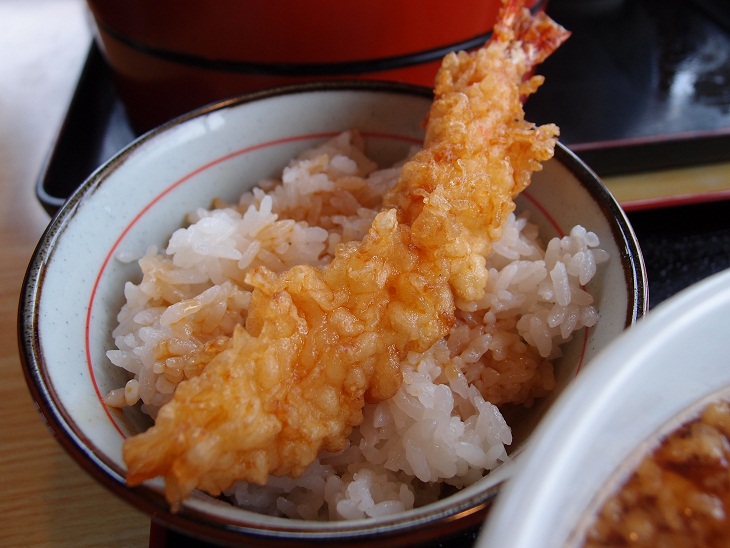 海老1本ではご飯があまりますが、残りはつけ汁でいただくと美味しいです。