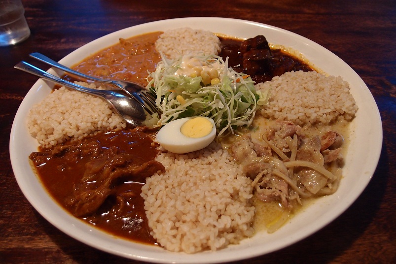 インド風ブラックカリー、タイ風グリーンカリー、スリランカ風ビーフカリー、インド風シーフードカリーをチョイスしてみました。