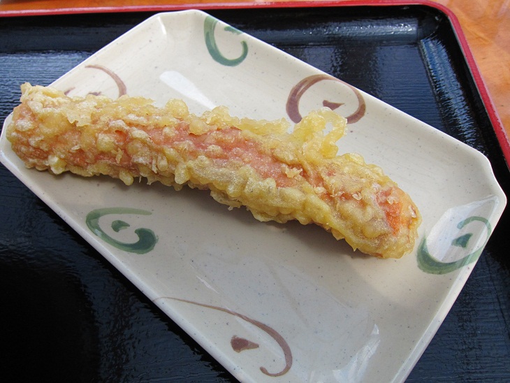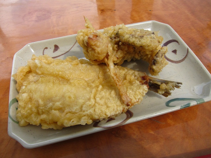 天ぷらは2人で『ちくわ天、アジ天、げそ天』各100円です。