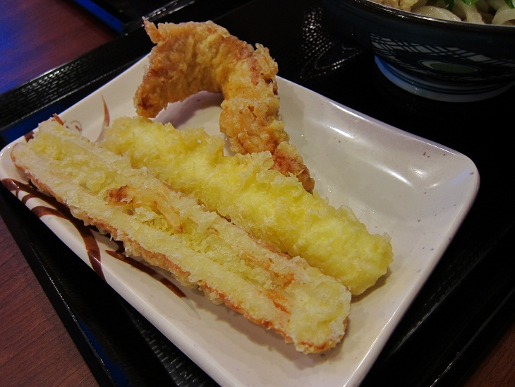 香川県で食べた讃岐うどんと比べると、だしが若干濃口なのと、天ぷらが小さいことです。香川の天ぷらはボリュームがあって安かったですから。