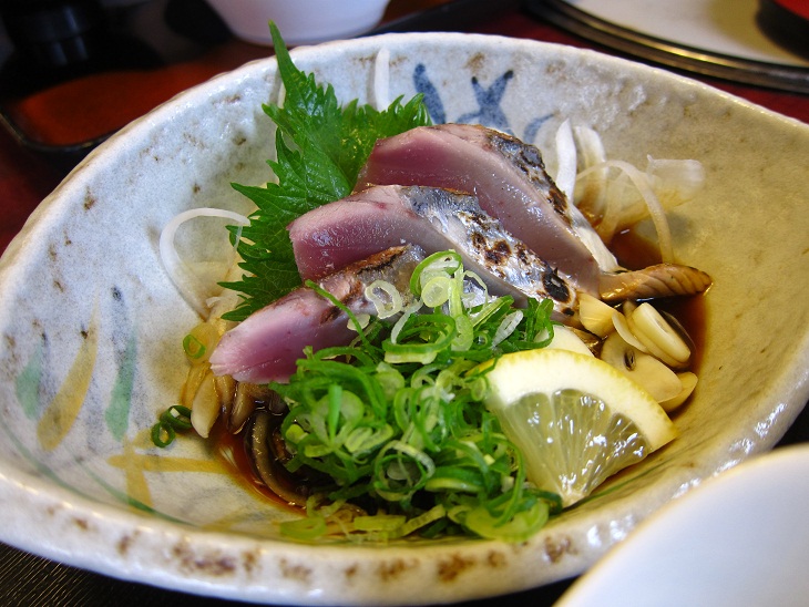 カツオのタタキは美味しいですが、前日に食べた明神丸の藁焼きカツオと比較してしまいます。藁焼きの勝利でしょう。