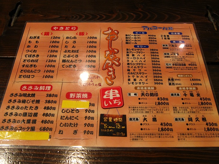 この近辺には数軒の焼鳥屋があるのですが、私のおすすめは串いちです。