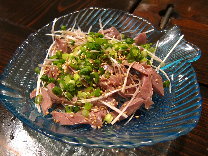 砂肝と白髪ネギをゴマ油と塩で味付けています。ジャキジャキした砂肝の食感がたまりませんねぇ。