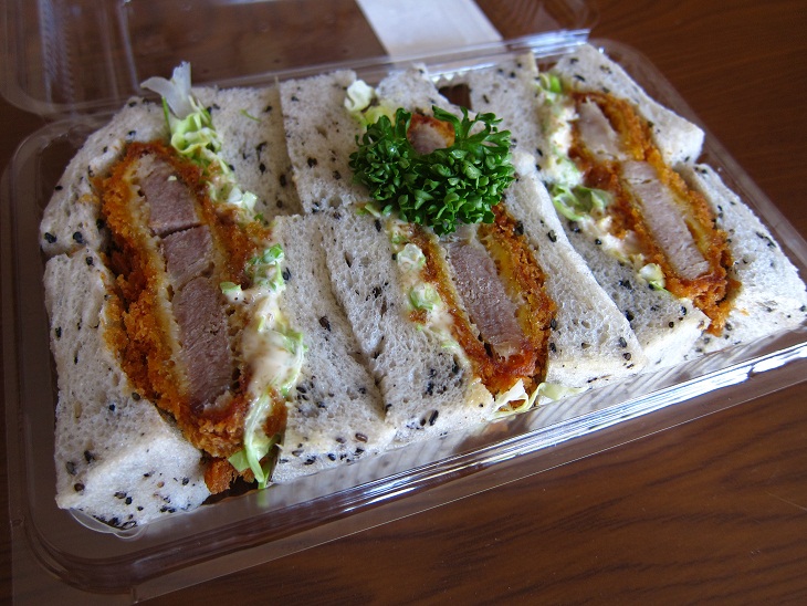 こちらも出来たてを待って購入しました。黒ゴマの香ばしいパンのカツサンドです。ソースはゴマドレッシングのような感じでした。