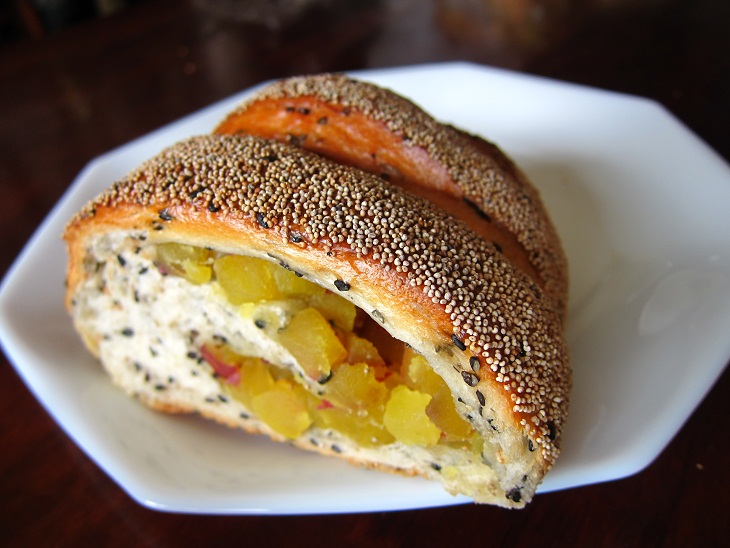モチモチの生地の中身はトマトリゾット風でした。こちらもまだ温かく美味しくいただけました。