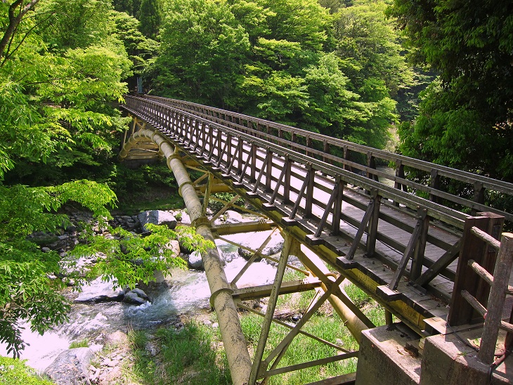 もう10年以上前に1度行ったことのあるお店です。駐車場に車を停めて、つり橋を渡ります。つり橋から見る道士の渓流は透き通っています。