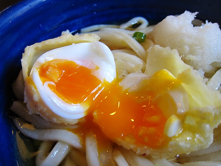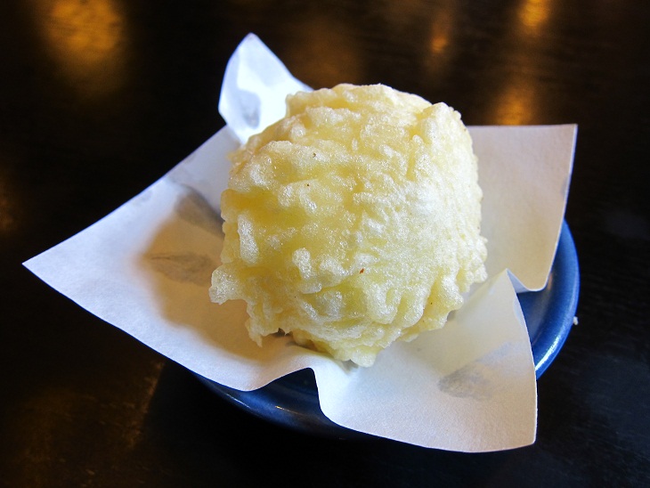 熱々の玉子の天ぷら。割ると中から黄身がとろ~り出てきます。