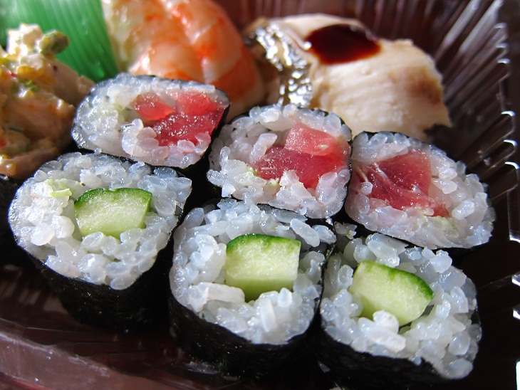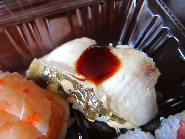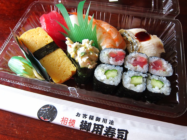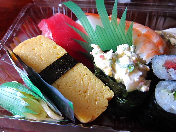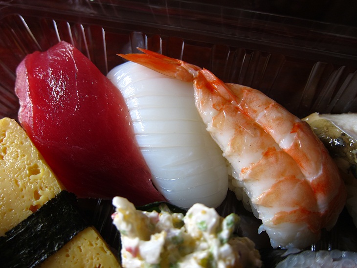 まぐろ、いか、えび、あなご、たまご、ホッキサラダ、鉄火巻、かっぱ巻・・・。この内容で税込み500円です。