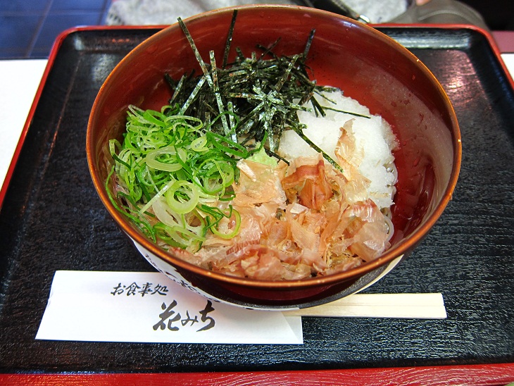麺の上に大根おろし、おろし生姜、青ネギが載ったシンプルな麺です。