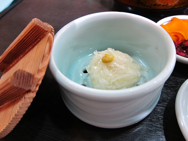 海老、タコ、レンコンなどの酢の物です。スダチを絞ってさらにさっぱりと頂きました。