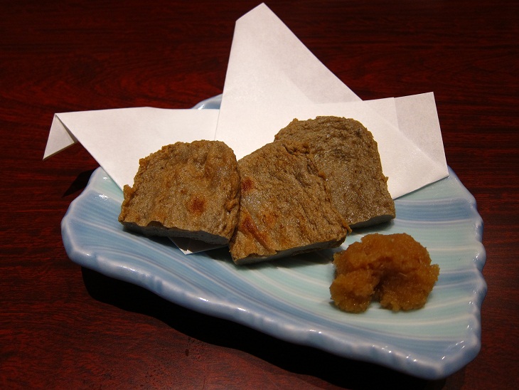 小魚のすり身を使った薩摩揚げみたいな感じの天ぷらです。独特な歯応えがあり美味しいです。