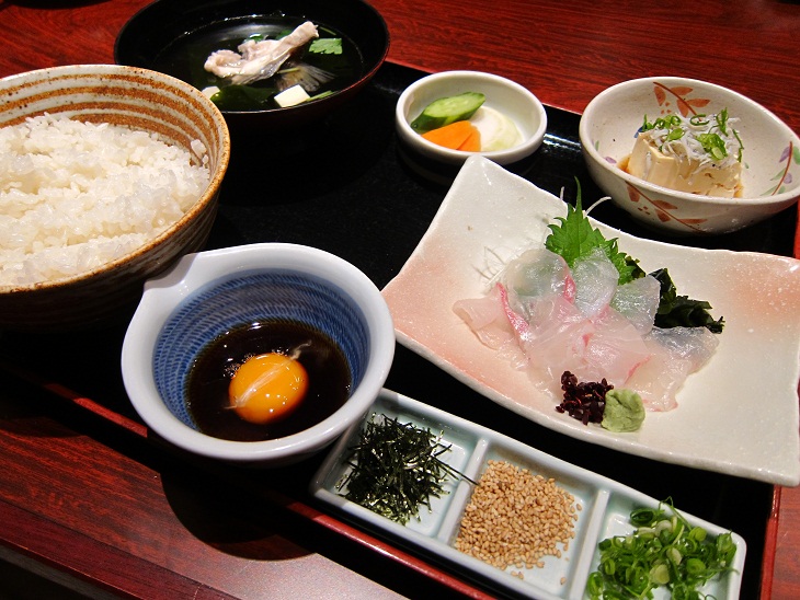 一見、鯛のお刺身定食のような形で出てきました。鯛の潮汁やシラスの載った冷奴も付いていましたよ。