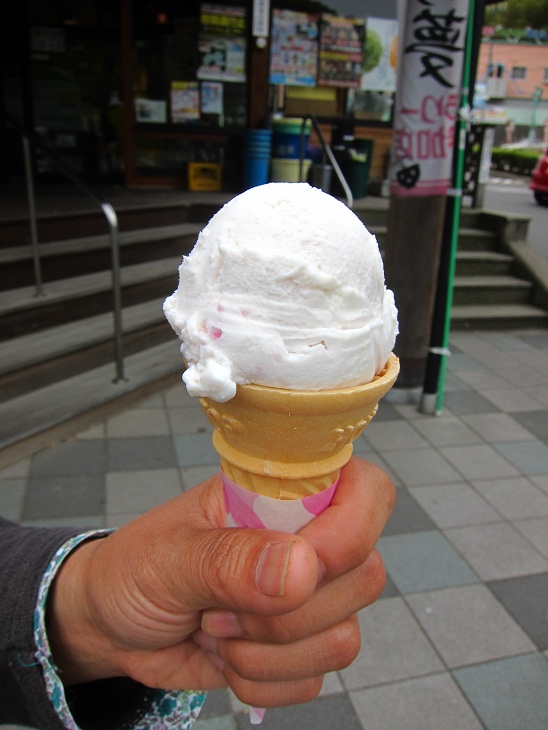 つつじアイスはちょっと珍しいですよね。他にも菜の花アイスもあって迷いましたが、つつじにしました。