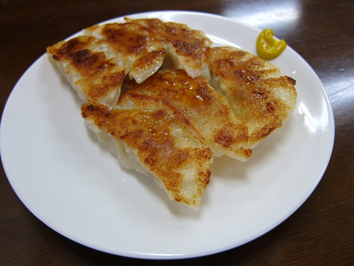 また、餃子の横にカラシが添えられていました。餃子にカラシも珍しい食べ方ですがカラシも合うのですね。