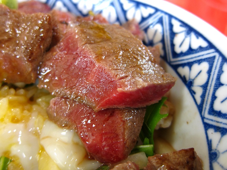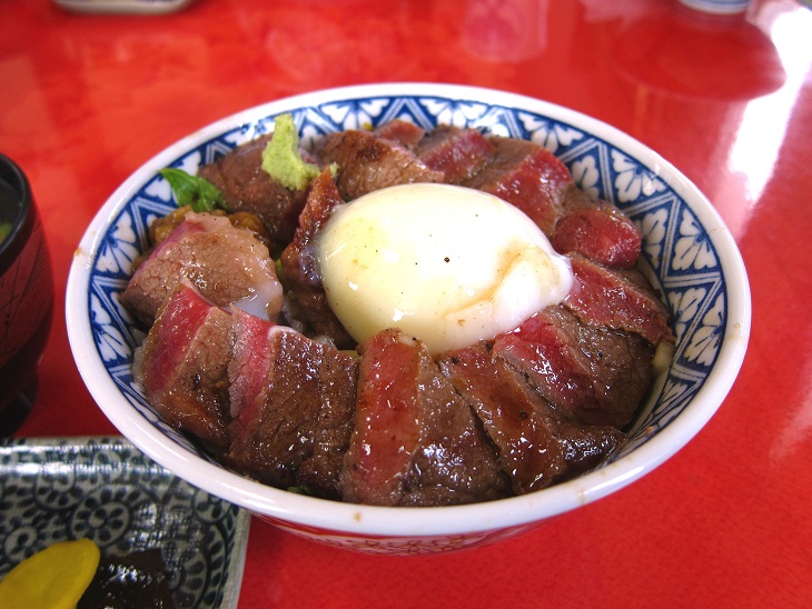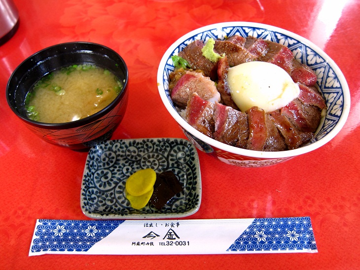 阿蘇の大自然で育った、あか牛。無駄な脂肪のない赤身ですが牛肉本来の旨味が楽しめます。阿蘇観光に行ったら是非食べておきたい1杯です。