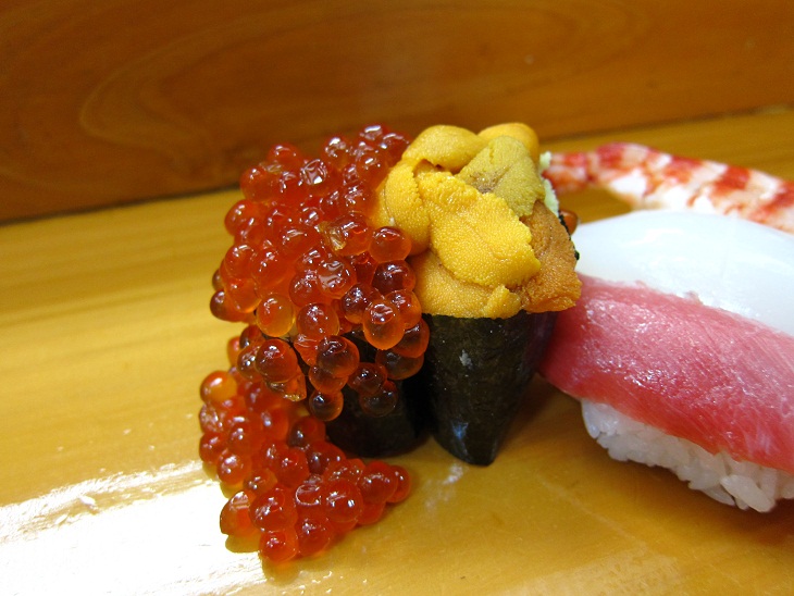 大きいネタの豪快な握りです。ウニもイクラも山盛りでした。