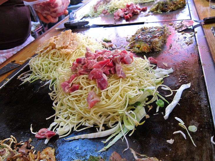 見た目はは広島焼きと似ていますが、作り方に少し違いがありました。違いはお店で見てください(笑)