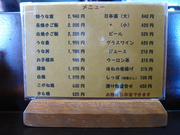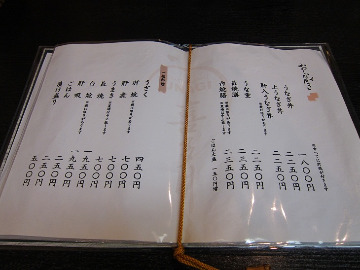 うな丼1000円、うな重1300円・・・。価格はどれれもリーズナブルです!