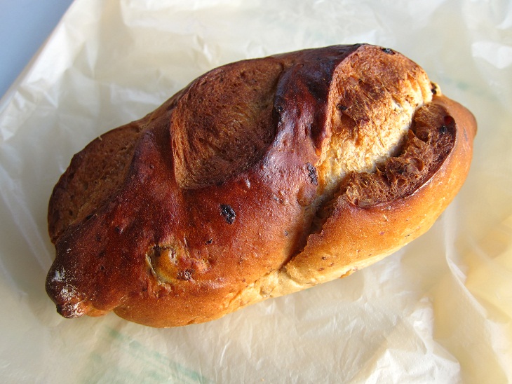 素朴な感じのライ麦を使ったパンで、クルミとレーズンも少し入っていました。ちょっぴち甘味を感じる味わい深いパンです。