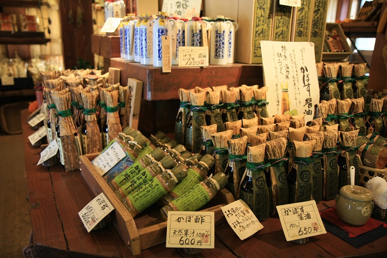 湯布院の湯の坪街道にある醤油専門店です。とても雰囲気のある醤油さんで、かぼす、だいだい、柚子などの天然果汁の醤油から、薬膳醤油、ニンニク醤油など色々な種類の醤油があります。もちろん普通の醤油もありました。