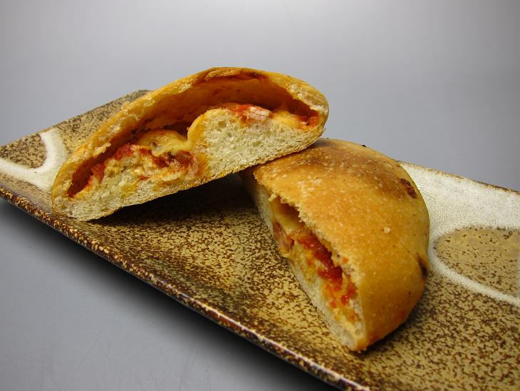 ピザ屋さんにあるカルツォーネをパンで作ったものです。