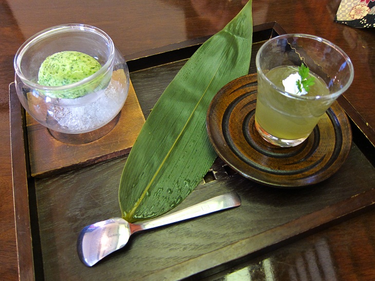 2種類のデザートが付いてきました。ほうれん草のアイスとベジフルゼリーでした。
