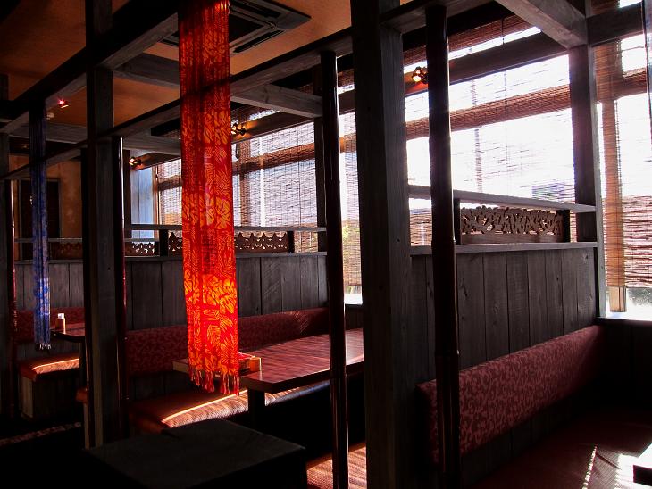 そんな小さな扉を開くと、なかなかオシャレな感じに仕切られた席になってました。間接照明にスポットライトで夜に行けば、さらに雰囲気は良さそうです。