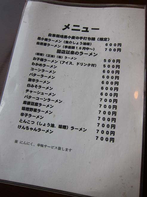 味噌、塩、正油のラーメン、各種ラーメンの他に『自家製栽培黒小麦の手打麺』のラーメンがあります。