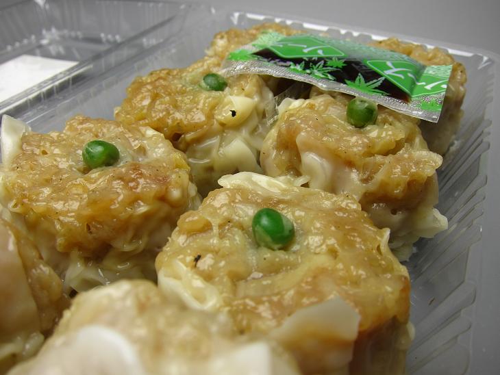 ボリューミーなシューマイはワンポイントのグリーンピースが載って鮮やかな緑が綺麗です。ウマそう!