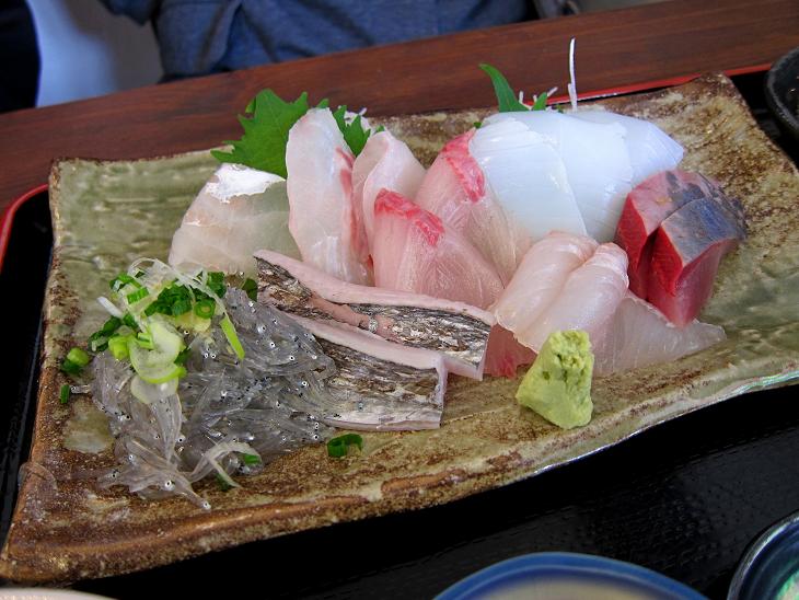 どれも新鮮でコリコリの歯応えがあります。相模湾の地魚刺身が満喫できる定食です!
