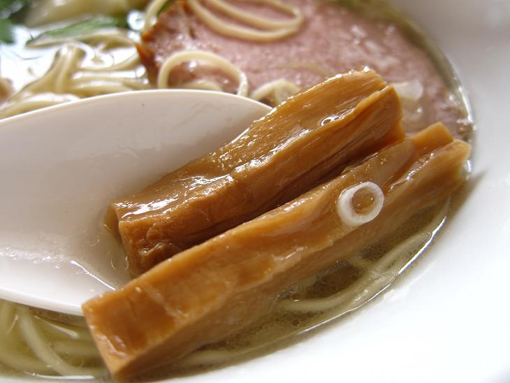 スープは豚骨など動物系中心でしょうか?透明でアッサリしています。これに背脂が入ってコッテリということでしょう。甘味を感じるスープですが旨味は少ないような気がしました。