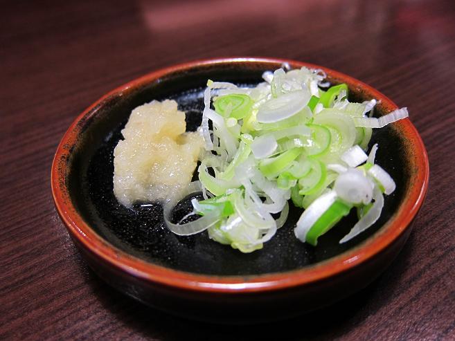 つゆは濃い目の辛口です。薬味のネギの上に柚子が載っています。この柚子をつゆに入れると香りが良いこと。