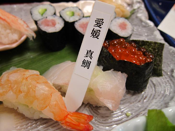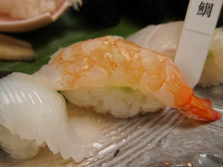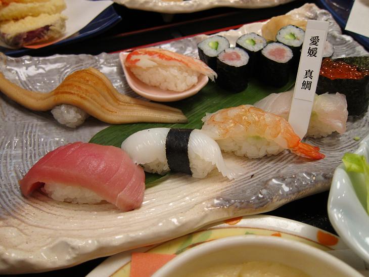 マグロ、イカ、エビ、タイ、イクラ、アナゴ、カニ、巻物でした。シャリは小ぶりでネタは良かったです。