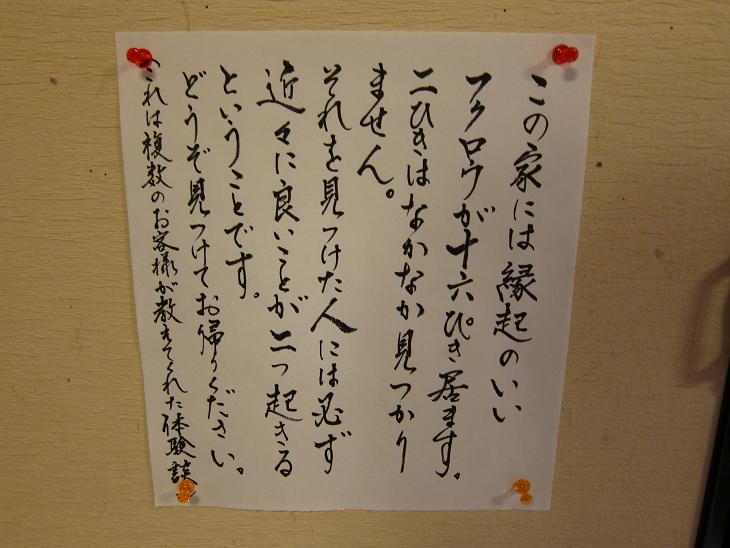 貼紙があり、縁起の良い16匹のフクロウを見つけると、良いことが2つ起きるとのことです。