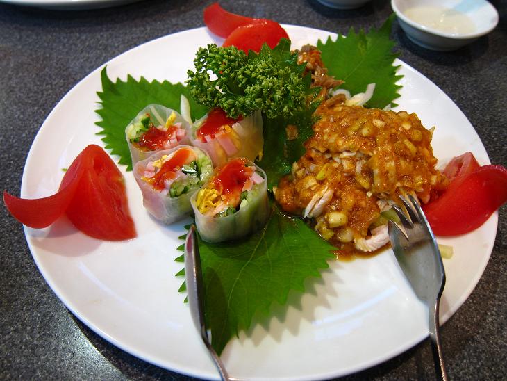 生春巻、蒸鶏、砂肝の三種です。色鮮やかで美味しいですが、ちと高いです(笑)