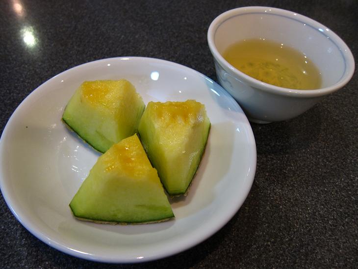 メロンとジャスミン茶を頂きました。メロンは完熟で甘かったです。食後のフルーツとジャスミン茶は口の中がサッパリして良いですね!