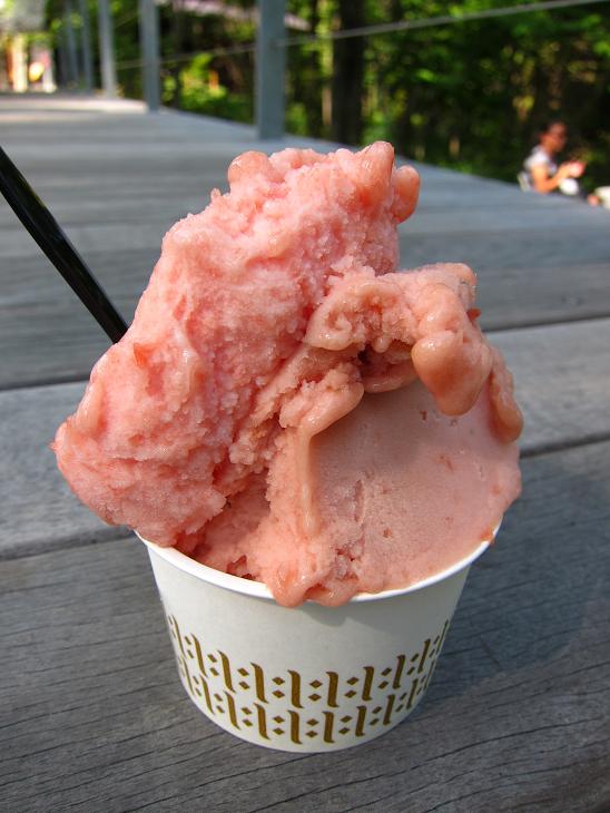 無難に『ピンクグレープフルーツ』にしようと思いましたが、ダブルにしても100円増しなので、冒険してもう1種類『トマトバジル』もお願いしました。