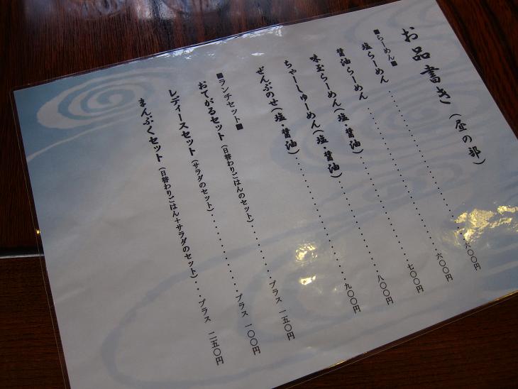 ラーメンのメニュー